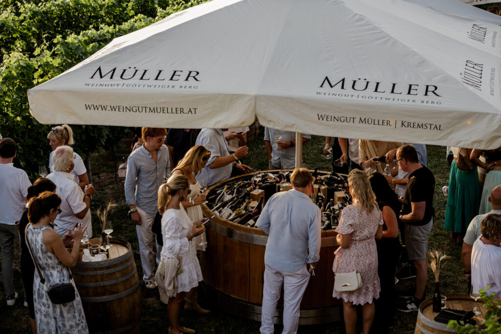 Von 17:00 bis 21:00 Uhr erwartet euch eine offene Weinverkostung mit einer großen Weinvielfalt vom Weingut Müller sowie von ausgewählten Gastwinzern, u. a. Weingut Kollwentz, Winzerhof Kiss, Weingut Allram, Weingut Familie Strehn, Weingut Philipp Bründlmayer, Weingut Högl und Weingut Hofstätter. Entdeckt unterschiedliche Stile, Herkünfte und Handschriften in der idyllischen Riede Eichbühel.